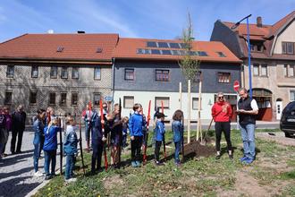 Zur Pflanzaktion, die von der Stadt organisiert und von Victorias Heimatverein SC Motor Zella-Mehlis unterstützt wurde, waren viele Interessierte gekommen. Sie wollten natürlich gern die Spitzensportlerin sehen und viele fanden auch Gelegenheit, ein persönliches Wort mit ihr zu wechseln. Victoria nutzte die Gelegenheit und bedankte sich bei allen, die sie unterstützt haben - insbesondere bei ihren Eltern und beim SC Motor, wo sie schon als Kindergartenkind mit dem Training begonnen hatte.