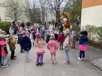 Besuch des Osterhasen bei den Kindern vom Kindergarten Sandhasennest in Benshausen.