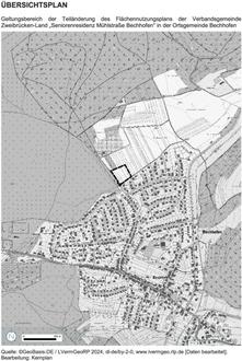 Der Verbandsgemeinderat Zweibrücken-Land hat in seiner Sitzung am 17.12.2024 die Aufstellung der Teiländerung 48 des Flächennutzungsplanes der Verbands-gemeinde Zweibrücken-Land für den Bereich Bechhofen, Seniorenresidenz Mühlstraße beschlossen.Ziel und Zweck der Planung ist die Darstellung einer Fläche für sonstige Sondergebiete, hier „Seniorenresidenz“. Der voraussichtliche Geltungsbereich der Teiländerung umfasst die Grundstücke mit den Plannummern 3203, 3204, 3205, 3206, 3207 sowie eine Teilfläche von 3220 der Gemarkung Bechhofen. Das Verfahren trägt die Bezeichnung „Teiländerung 48 zum Flächennutzungsplan 2006, Änderungsbereich Bechhofen, Seniorenresidenz Mühlstraße“.
