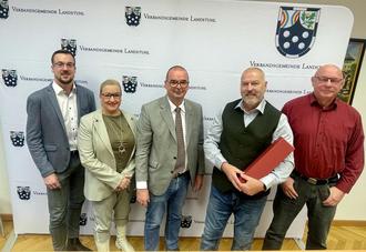 Im Beisein von Abteilungsleiter Michael Hempfling, Fachbereichsleiter Simon Lang und Büroleiterin Sibylle Scherer, dankte der Bürgermeister Thomas Schulze herzlich für seinen langjährigen großen Einsatz für das CUBO und das Naturerlebnisbad. Als kleines Dankeschön überreichte Dr. Degenhardt zusätzlich zur Dankesurkunde eine Flasche Bürgermeistersekt und einen Blumenstrauß und wünschte für den kommenden Ruhestand alles Gute.