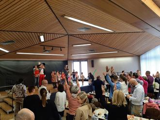 Bann. Bereits zum dritten Mal hat der Förderverein des Bännjer Kindergartens seinen Familiennachmittag im Pfarrheim durchgeführt. Die Veranstaltung erfreut sich einer großen Beliebtheit bei den einheimischen Familien und ist aus dem Veranstaltungskalender der Gemeinde nicht mehr wegzudenken. Neben dem erstklassigen Programm und den hervorragenden Verpflegungsangeboten der vergangenen Veranstaltungen, gab es in diesem Jahr einige neue Angebote. So gab es zum Beispiel saar-pfälzische Köstlichkeiten vom Grill und die Bännjer Bücherei hatte ebenfalls mit einem tollen Programm ihre Türen geöffnet. Ein besonderes Erlebnis für die Kinder war der Besuch der Mickey Mouse beim Familiennachmittag. „Dank unserer vielen ehrenamtlichen Helferinnen und Helfer konnten wir wieder diese schöne Veranstaltung anbieten. Mit tollen Ideen und großem Engagement hat jeder dazu beigetragen, dass diese ein voller Erfolg war. Das ist nicht selbstverständlich und verdient ein großes Dankeschön.“, so die beiden Vorsitzenden Markus Borst und Maren Schmitt am Ende des Nachmittags. Der Förderverein unterstützt den Bännjer Kindergarten weiterhin im großen Maße und investiert die Einnahmen derzeit in die Bauarbeiten für das Wasserspielgerät in der Außenanlage.