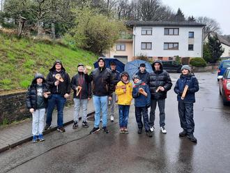 Am Karfreitag hörte man wieder lautes Rasseln und Singen in den Ortsstraßen von Bann, denn über 40 Messdiener/innen zogen in Gruppen durch das Dorf und verkündeten das Leiden und Sterben Jesu. Sie sangen laut „Wir danken dir Herr Jesu Christ, dass du für uns gestorben bist!“ Danach wurde mit ihren Rasseln und Klepper ordentlich Lärm gemacht, um das Geschehene zu unterstreichen und zum Kirchgang zu rufen.. Diese Jahrhunderte alte Tradition geht zurück auf die Legende, dass die Glocken während der Grabesruhe Christi nach Rom fliegen und nicht mehr läuten.Erst am Ostermorgen kehren sie zurück,um die Auferstehung zu verkünden. Das Klappern der Messdiener soll in dieser Zeit die Glocken ersetzen und die Gläubigen zum Beten und Gottesdienst auffodern. Am Karsamstag dann ziehen die Messdiener/innen von Haus zu Haus und bitten um eine kleine Gabe für ihre fleißigen Kirchendienste.