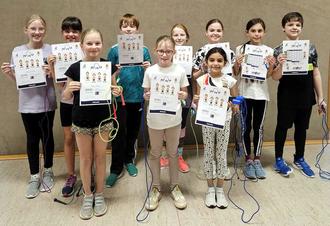 Mitglieder der Sportart Rope Skipping hatten sich auf einen Sprungtest „Jump for Fun“ vorbereitet. Es galt es Sprünge zu absolvieren, um ein Zertifikat zu erreichen, beginnend beim Anfänger bis hin zum Profi.