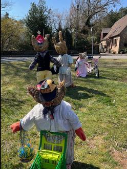 Die Hasen sind pünktlich vor Ostern wieder im Dorfmittelpunkt anzutreffen. Mit tatkräftiger Unterstützung der „Kochmänner“ wird die Hasenklasse mit Lehrer von den Landfrauen präsentiert. Die Kita-Kinder, auf ihrem Weg zum Kita-Provisorium, haben bereits ihre Freude bekundet. Mütter berichten, dass die Kleinen die Hasen stürmisch begrüßt haben. Die Hasenschule wird gerne genutzt für Familienfotos.