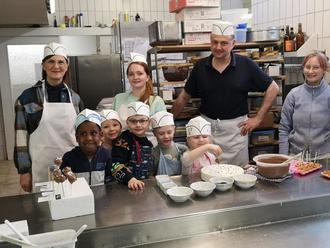 Familie Goldinger zeigte den kleinen und großen Gästen die Arbeit im Familienbetrieb mit Konditorei, Café und Hotel. Ausgestattet mit Schürze und selbst bemaltem Konditorhut durften sich die Kinder gemeinsam mit Inhaber und Konditormeister Paul Goldinger und seinem Team in der hauseigenen Backstube als kleine Konditor*innen versuchen und selbstgemachte Cake-Pops backen. Mit viel Freude und Eifer waren die Schlaufüchse unter Anleitung der Profis am Werk. Das Ergebnis konnte sich sehen lassen und stolz durfte jedes der Kinder seine selbst hergestellten Cake-Pops sowie dem dazugehörigen Cake-Pop-Führerschein, den Familie Goldinger jedem kleinen Bäcker ausstellte mit nach Hause nehmen. Die Vorschulkinder und ihre Erzieherinnen bedanken sich ganz herzlich beim Team des Café Goldinger für diesen lehrreichen, lustigen und einfach tollen Ausflug in die Konditorwelt!