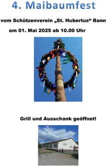 Der Schützenverein „St. Hubertus“ e. V. in Bann ist auf der Suche nach funktionsfähigen Luftgewehren. Aufgrund der Tatsache, dass die vorhandenen Luftgewehre ins Alter gekommen sind, sind wir auf der Suche nach gut erhaltenen Luftgewehren. Wir bitten die Bürger von Bann einmal zuhause nachzusehen, ob noch welche vorhanden sind.