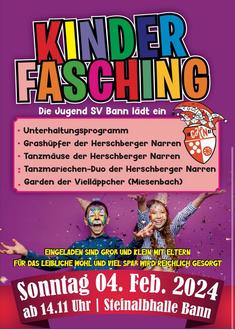 Die Jugendabteilung veranstaltet am Sonntag den 4. Februar ab 14.11 Uhr wieder ihr Kinderfasching in der Steinalbhalle in Bann.