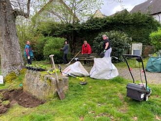 Auf Vordermann gebracht wurde dann die Grünzone "Am Ruhestein" gegenüber vom örtlichen Friedhof. Zweige mussten dort gestutzt und Wildwuchs entfernt werden. Die Rasenfläche wurde gemäht und eine Insel mit ganzjährigen Blühpflanzen angelegt. Vom Moos befreit und gereinigt lädt die Parkbank dort jetzt wieder zum Verweilen ein.