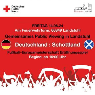 Am Freitag, den 14. Juni 2024, ab 16:00 Uhr, laden wir Sie herzlich ein, gemeinsam mit dem DRK Kreisverband Kaiserlautern-Land und der Feuerwehr Landstuhl das mit Spannung erwartete Spiel zwischen Deutschland und Schottland live zu erleben! Bevor das Spiel beginnt, können Sie an unseren vielfältigen Aktivitäten teilnehmen: vom aufregenden Human Kicker-Turnier über Fußballdart bis hin zur Hüpfburg für die Kleinen. Natürlich ist auch für das leibliche Wohl bestens gesorgt. Markieren Sie sich den Termin und seien Sie Teil dieser mitreißenden Fußballfeier! DRK Centrum Landstuhl, Am Feuerwehrturm 4-6, 66849 Landstuhl. Anmeldung für das Human Kicker Turnier unter: kickerturnieranmeldung@feuerwehr-landstuhl.de