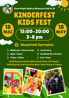 Am 18. Mai 2024 laden die Green Knights Ch29 alle, jung und alt, herzlich zum Kinderfest am Sportplatz Hauptstuhl ein.