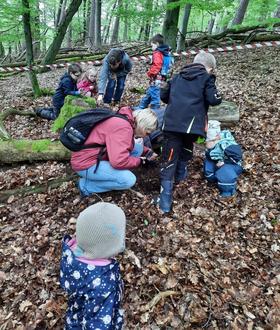 Am Freitag den 12.05.23 um 14:30 Uhr standen sie schon bereit für das Abenteuer „Wald wuseln“. Die Kinder von der Kindertagesstätte Pusteblume mit einigen Geschwisterkindern und weiteren Vereinsmitgliedern, versammelten sich mit Ihren Eltern zuerst am Sportheim in Mittelbrunn. Bis es um 15:00 Uhr los ging in Richtung Wald, nahe Mittelbrunner Mühle. Dort angekommen begrüßte uns freundlich der Waldpädagoge Steffen Barthel und sein Unterstützer. In Form von einem Parkours entlang des Waldweges sowie Abseits davon, möchten die beiden ihr Wissen über die Natur und die ökologischen Zusammenhänge den Kindern spielerisch vermitteln. Mit Hilfe einer Lupe konnte bei einer Station, der Waldboden erkundet werden. Alle waren überrascht, wo die Tiere sich überall aufhielten, im Boden, auf Baumstämmen, aber auch welche Artenvielfalt es gab.