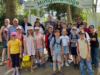 Am Mittwoch, dem 14. Mai, war es soweit. Bei herrlichem Sonnenschein machten wir uns auf den Weg zum Minigolfplatz am Gelterswoog. Mit Schlägern und Bällen ausgerüstet erstürmten die Kinder die verschiedenen Bahnen und freuten sich besonders über gelungene Treffer. Natürlich dürfen an einem solchen Tag auch Getränke, Süßigkeiten und besonders das erfrischende Eis nicht fehlen. Nach einer Stärkung brachten die Taxifahrerinnen und Taxifahrer jedes Kind glücklich und zufrieden nach Hause.
