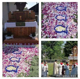 Am Donnerstag, den 19.06.2025 um 10:30 Uhr beginnt der Gottesdienst in der St. Antoniuskirche, anschließend zieht die Prozession von der Kirche aus über den Pfarrer-Bresky-Weg, Pirminiusstraße zum Dorfplatz und von dort zurück zur Kirche.