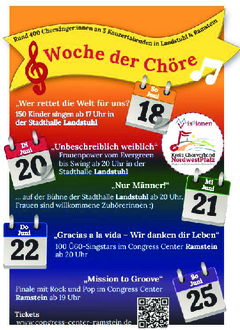 Unter dem Projekt „Visionen & Missionen“ des KreisChorverbandes, präsentieren wir am Mittwoch, 21.06.2023 ab 20:00 Uhr in der Stadthalle Landstuhl zu dem Motto „Die Woche der Chöre – Nur Männer!“ unsere neu einstudierten Lieder. An diesem Abend werden auch Lieder gemeinsam mit dem MGV Queidersbach dargeboten.