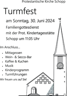 | 11.05 Uhr | Schopp, Familiengottesdienst + TURMFEST |