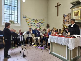 Die zahlreich anwesenden Besucher*innen erfreuten sich an den Klängen der Bläser*innen und sangen die Gemeindelieder kräftig mit.