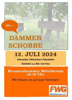 Wie auch im letzten Jahr veranstaltet die Mittelbrunn FWG in diesem Jahr wieder den Dämmerschoppen an der Brunnenkammer.
