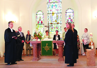 Am Sonntag, 2. Juli 2023 wurde Pfarrerin Ulrike Höflich als neue Pfarrerin in Trippstadt und unserer Gemeindekooperation „Moosalb-Brücke“ im Gottesdienst von Dekan Matthias Schwarz eingeführt. Dabei assistierten Dieter Lang, Presbyter in Trippstadt und Pfarrer Wolfgang Hust, Pfarrer aus Schopp. Unsere Prot. Kirchengemeinde Schopp-Linden-Krickenbach und der Prot. Kirchenbezirk Kaiserslautern waren vertreten durch Axel Rung/Mitglied des Presbyteriums sowie Michael Hirschelmann/Mitglied des Bezirkskirchenrates Kaiserslautern. Der Kirchenchor erhielt bei seinem Gesangsvortrag Unterstützung von Sängerinnen und Sängern aus Schopp.