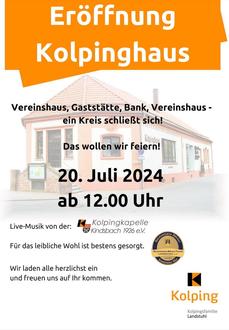 Die Kolpingsfamilie Landstuhl feiert am 20.07. die Einweihung der neuen Räumlichkeiten im Kolpinghaus. Nachdem das komplette Gebäude über viele Jahre hinweg vermietet war, übernimmt die Kolpingsfamilie nun wieder einen Teil des Gebäudes für den eigenen Gebrauch. Nach sorgfältiger Planung wurden die Räume der ehemaligen Gaststätte für die Vereinsnutzung hergerichtet. Neben dem Hauptsaal mit Schanktheke, wurden die Küche und die Sanitärbereiche runderneuert und neugestaltet. Aus diesem Anlass wird es um 10:00 Uhr eine offizielle Eröffnung unter Beisein des Präses, Pfarrer Andreas König und geladener Gäste geben, die musikalisch von einem Ensemble der Kolpingskapelle Kindsbach untermalt wird. Zudem wird es im und rund um das Kolpinghaus von 12:00 Uhr bis voraussichtlich 18:00 Uhr ein Fest geben, zu dem hiermit herzliche Einladung an die Bevölkerung ergeht. Für Speis und Trank sowie Musik durch die Kolpingskapelle sind gesorgt.