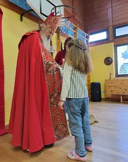 Doch dieses Jahr war es endlich soweit und der Nikolaus überraschte uns während des großen Morgenkreises. Diese Überraschung ist dem Nikolaus gut gelungen und die Freude der Kinder war riesen groß. Damit sich der weite Weg nach Landstuhl gelohnt hat, sangen die Kinder einige unserer Lieblings-Nikolauslieder vor. Zum Dank hat er jedes Kind persönlich verabschiedet und ihm ein kleines Geschenk aus seinem großen Sack überreicht.