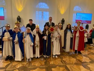 Königlich gekleidet vertraten die Bännjer Könige das Bistum Speyer. Gekonnt trugen sie ihr traditionelles Gedicht vor und überbrachten den Segensspruch 20*C+M+B+25 „Christus mansionem benedicat“ - Christus segne dieses Haus. Zur Unterstützung der diesjährigen Aktion überreichte der Ministerpräsident den Kindern eine großzügige Spende und ermutigte sie, sich weiterhin zu engagieren. Der Besuch in der Staatskanzlei in Mainz wird für die Sternsingerinnen und Sternsinger ein unvergessliches Erlebnis bleiben.
