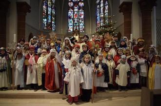 56 königlich gekleidete Sternsingerinnen und Sternsinger zwischen 4 und 16 Jahren versammelten sich am Samstag, den 10.01.2026, in der Kirche, um die diesjährige Aktion „STERNSINGEN GEGEN KINDERARBEIT - SCHULE STATT FABRIK“ zu unterstützen. Nach dem Aussendungssegen von Pfarrer Stenz machten sich die kleinen und großen Könige bei extremen Wetterverhältnissen auf den Weg, um den Segen aus der Krippe in unsere Familien zu bringen. Sie schrieben oder klebten 20*C+M+B+26 an die Türen, was bedeutet „Christus segne dieses Haus“. Die Bewohner belohnten die Kinder mit großzügigen Geldspenden für die Menschen in Bangladesch, sodass sie sich über den stolzen Betrag von 7.369 Euro freuen konnten.