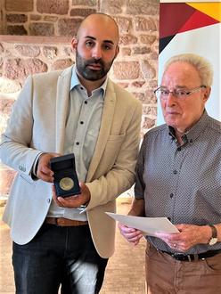 Mattia De Fazio zeichnet Alban Helfen für 70-jährige CDU-Mitgliedschaft aus. Foto B. Geisel: Mattia De Fazio zeichnet Alban Helfen für 70-jährige CDU-Mitgliedschaft aus.