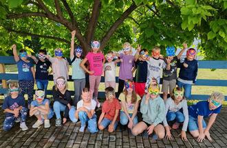 Es wurde auch wieder kreativ. Die Kinder bastelten ihre eigene Superheldenmaske und mit „Schrumpffolie“ entstanden tolle kleine Schlüsselanhänger, die stolz mit nach Hause genommen werden durften.