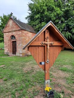 Schon zum wiederholten Male wurde das Primiz-Kreuz an der Barbara-Kapelle am südlichen Ortsausgang von Bann geschändet. Unbekannte Täter haben den Corpus Christi abgerissen und mutwillig zerstört. Entdeckt wurde der Schaden von Roman Folz aus Queidersbach, der die Pfarrgemeinde sofort informierte. Luzia Berberich stiftete spontan ein neues Kreuz mit Christusfigur, das dann von Thomas Trinkaus und Roman Folz wieder fachgerecht hergerichtet und montiert wurde. Das Holzkreuz wurde 2003 vom Bännjer Fanfarenzug anlässlich der Primiz von Marco Richtscheid gestiftet und aufgestellt. Seit 20 Jahren steht nun das Wegekreuz an diesem Platz und erfreute alle vorrübergehenden Spaziergänger. Es ist wirklich schockierend, dass manche Personen vor nichts mehr Respekt haben.