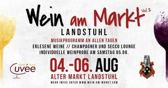 Nach dem herausragenden Erfolg bei der Premiere im vergangenen Jahr, verwandelt sich der Alte Markt auch in diesem Sommer wieder in ein Paradies für Wein-, Genuss- und Musikliebhaber. Am Wochenende vom 04.-06.08. verwandelt sich der ohnehin sehr liebevoll angelegte „Alte Markt“ im Zentrum Landstuhls in ein wunderschönes Weindorf. Livemusik, individuell gestaltbare Weinproben, atmosphärische Abendbeleuchtung sowie ein vielfältiges Weinangebot ausgewählter Winzer, frische Secco Cocktails und erlesene Winzer Champagner erwarten Sie. Für das leibliche Wohl wird ebenfalls bestens gesorgt mit Flammlachs, Grillspezialitäten, Pizza und mehr…