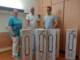 Dank der „sensationellen Spendenfreudigkeit“ seiner Mitmenschen, konnte Richard Roschel der Station sieben hochwertige, dringend benötigte und Geräuscharme Turm-Luftstromventilatoren übergeben und damit nicht nur der Station helfen, sondern auch das Bewusstsein für die Belange der Palliativmedizin stärken.