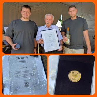 Anlässlich des 50. Hahnenfestes in Queidersbach wurde Rudi Strasser in Anerkennung seiner Verdienste als Gründungsmitglied und seines langjährigen Engagements mit großem Dank und Wertschätzung geehrt.
