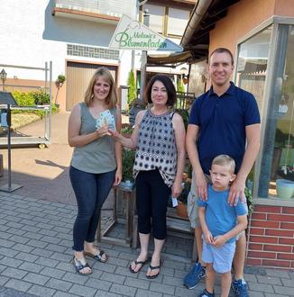 v.l.n.r.: stellv. Vorsitzende Maren Schmitt, Inhaberin Melanie Wilhelm, 1. Vorsitzender Markus Borst mit Nachwuchs