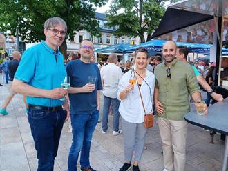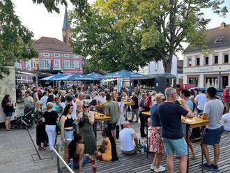 Auch das zweite Weindorf auf dem Alten Markt entpuppte sich nach der Premiere im vergangenen Jahr als Magnet für Genussmenschen. Bereits zum Auftakt am Freitag wurde bei einer After-Work-Party das Weinangebot ausgewählter Winzer bei milden Temperaturen gut angenommen. Die Champagner & Secco Lounge, der Whisky-Tasting-Stand sowie Grillspezialitäten, Pizza und mediterrane Köstlichkeiten erfreuten ebenfalls die Gaumen der vielen Besucher. Drei Tage lang hatte die Fördergemeinschaft Landstuhl und die Cuvée Weinbar & Vinothek Kaiserslautern zu „Wein am Markt“ in die Sickingenstadt geladen. Weinproben und Weinverkauf lockten am Samstag so manchen Weinkenner nach Landstuhl. Am Samstag und Sonntag sorgte Livemusik für gute und ausgelassene Stimmung und lies so manchen das Tanzbein schwingen. (bor.)