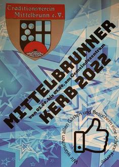 Vom 02.09. - 05.09.2022 ist die Mittelbrunner Kerb. Der Traditionsverein Mittelbrunn e. V. und die Feuerwehr Mittelbrunn freuen sich über euer Kommen. Wir wollen endlich wieder zusammen bei gutem Essen, Musik und Tanz feiern und Spaß haben. An unsere Kinder haben wir auch gedacht, es kommt ein Zauberer u.v.m. Für Essen und Trinken ist bestens gesorgt.