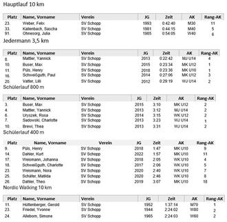 Nachfolgend die Ergebnisse der Schopper Teilnehmer am Volkslauf: