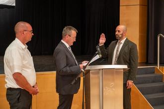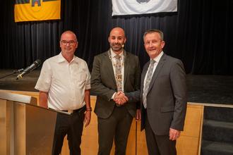 Im Rahmen der konstituierenden Sitzung des Stadtrats der Sickingenstadt Landstuhl am 27.08.2024 übernahm Mattia De Fazio offiziell die Amtsgeschäfte als Stadtbürgermeister von seinem Vorgänger Ralf Hersina, der zuvor als letzte Amtshandlung die gewählten Ratsmitglieder per Handschlag verpflichtete. Mattia De Fazio beginnt sein Amt als Stadtbürgermeister der Sickingenstadt mit Dankbarkeit für das ihm bereits jetzt entgegengebrachte Vertrauen und die vielseitige Unterstützung auf dem Weg ins Amt. Mit Vorfreude auf die nun anstehende Arbeit, aber auch mit Respekt vor den anstehenden Herausforderungen und der damit zurecht verbundenen Erwartungshaltung gehe er an die Arbeit, so De Fazio. Als Stadtbeigeordnete stehen ihm künftig Boris Bohr, der als Erster Stadtbeigeordneter auch der direkte Stellvertreter De Fazios ist und Gerhard Malinowski als weiterer Stadtbeigeordneter zur Seite.