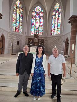 Unter dem Motto „Singt dem Herrn ein neues Lied“ erklangen am vergangenen Sonntag festliche Klänge durch die neugotische Valentinuskirche in Bann, denn das „Trio Respiro“ präsentierte festliche barocke Musik. Ursula Herzel (Sopran), Jörg Bernd (Trompete) und Markus Meisenheimer (Orgel), alles gestandene Musiker, verzauberten mit herrlichen Melodien aus dem 16./17.Jahrhundert, sowie auch mit neuzeitlicher Kirchenmusik. Die Virtuosität der Musiker und die gute Akkustik der dreischiffigen Kirche ergaben einen musikalischen Genuss für die Zuhörer. Großer Applaus war der verdiente Lohn für die Künstler. Weil an diesem Sonntag auch der Tag des offenen Denkmals war, refererierte Altbürgermeister Arnold Germann über die Geschichte des imposanten Kirchenbaus von 1883 und stellte in seinen interessanten Ausführungen fest, dass dieses schöne Gotteshaus in erster Linie dem damals unermüdlichen Einsatz von Pfarrer Adolf Graf und dem Fleiß und dem Arbeitswillen der Bännjer und Queidersbacher Gläubigen zu verdanken sei. Die Pfarrgemeinde Bann könne stolz sein, dass unsere Vorfahren in nur 28 Monaten Bauzeit dieses Bauwerk zum Preis von 44.642 Goldmark geschaffen haben. Er rief alle dazu auf, das herrliches Kirchengebäude, das zurecht auch Dom vom Steinalbtal genannt wird, zu pflegen und zu erhalten.