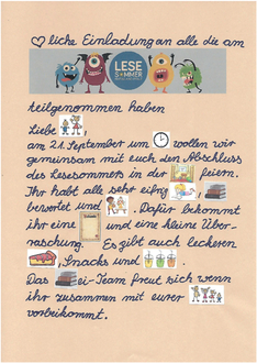 Das Büchereifest am 21. Sept. 2024 um 14:00 Uhr ist keine schulische Veranstaltung, d. h. die Aufsichtspflicht liegt bei den Eltern.
