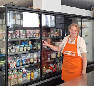 Heide Güldenfuß, Leitung Fachbereich Soziale Arbeit, vor der neuen Kühltheke im Tafelladen.