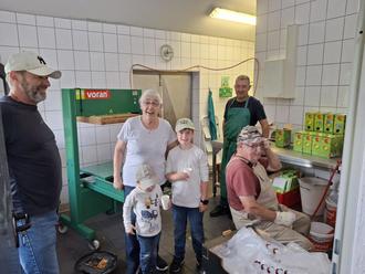 Die Keltersaison des OGV ist in der vergangenen Woche gut angelaufen. Mehrere Zentner Äpfel wurden von dem OGV-Team gekrutzel, gepresst und pasteurisiert. Wer Obst keltern will, soll sich bei Hubert Glas, Tel. Nr. 13290 anmelden, um einen Termin zu bekommen. (ge)