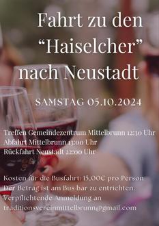 Der Traditionsverein Mittelbrunn organisiert eine Busfahrt nach Neustadt/Weinstraße zu den "Haiselcher".