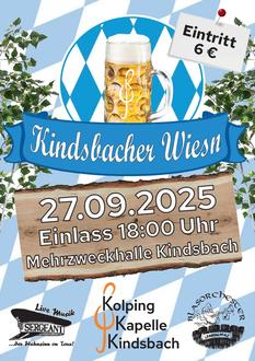 Die Kolpingkapelle Kindsbach lädt auch in diesem Jahr wieder herzlich zu ihrem traditionellen Wiesn ein. Am Samstag, den 27.09.2025 ab 18:00 Uhr, verwandelt sich die Mehrzweckhalle Kindsbach in ein echtes Festzelt mit bayerischem Flair.