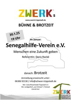 Die Zukunftswerkstatt Trippstadt lädt zur kommenden "Bühne & Brotzeit" am 30. Januar in den Landgasthof "Zum Schwan" ein. Frau Racké wird uns Einblicke in Land, Leute und die Arbeit des Senegal-Hilfevereins geben. Vorbeikommen, Neues erfahren und ins Gespräch kommen. Der Eintritt ist frei.