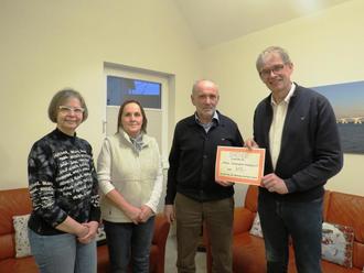 Eine Spende in Höhe von 315 € zugunsten der „Aktion Sonnenschein Westpfalz e. V.“ hat Herr Gerhard Schmitt aus Obernheim den beiden Vorsitzenden Boris Bohr und Beate Wirtgen-Bohr am vergangenen Freitag am Sitz des Fördervereins in Landstuhl überreicht. Das Geld ist eine Teilsumme aus dem Erlös des Gartenfestes der Familie Schmitt im vergangenen Jahr anlässlich des 70. Geburtstages von Herrn Schmitt. Auf der Suche nach einem guten und sinnvollen Spendenprojekt war der Spender auf den Verein gekommen. Der Förderverein vergibt das Geld gezielt nach Entscheidung des Vorstandes innerhalb des ökumenischen Gemeinschaftswerkes, überwiegend in den Einrichtungen in der Langwiedener Straße. (bor.)