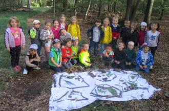 Am Mittwoch, den 20.09.2023 fand für unsere Vorschulkinder die Vorschule im Wald statt. Gut ausgerüstet mit Rucksackverpflegung und freudiger Erwartung machten sich die Kinder auf den Weg zum „Grünen Klassenzimmer“ im Kindsbacher Wald. Dort angekommen, stärkten sich alle Kinder mit ihrem leckeren Frühstück. Dann ging die Entdeckungstour los. Schnell entstanden viele Spielideen und aus Stöcken wurden große Zelte gebaut oder ein Baumstamm verwandelte sich in ein Pferd zum Reiten. Mit einem Fingerspiel und einem Begrüßungslied begann danach unser Morgenkreis, bei dem die Kinder unter anderem aus Baumstöcken, die sie auf dem Boden fanden, verschiedenen Formen legten. Besonders spannend war es, mit den Stöcken einen Kreis hinzubekommen. Mit gesammelten Materialien wurden die Formen noch geschmückt, bevor wieder Gelegenheit zum Spielen war. Schnell war die Zeit vorbei und die Vorschulkinder freuen sich in ihrem letzten Kita-Jahr noch auf weitere tolle Waldtage!