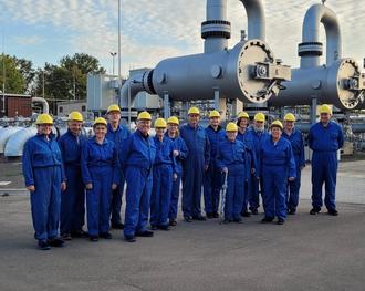 Ausgestattet mit Arbeitsoverall, Sicherheitshelm und rutschfesten Schuhen besichtigten 2 Gruppen der Landfrauen die Gasverdichterstation in Mittelbrunn.