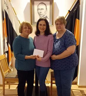 Seit einigen Jahren wohnen auch Kolpingsmitglieder aus der der Ukraine bei uns und bringen sich auch hier tatkräftig ein. Grund genug, auch einen Teil der Einnahmen aus dem Familientag in die Ukraine zu spenden. Unterstützt wird ein Sportfest für Kinder mit Beeinträchtigungen. Manuela und Elke haben die Spende in Höhe von 150 Euro an Olessia übergeben.