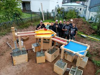 Am Kindergarten in Bann lässt sich eine neue Matschanlage bewundern. Der Förderverein des Kindergartens Bann hat die Aktion ins Leben gerufen und die Anlage finanziert. Tatkräftige Unterstützung leistete der Traditionsverein „Die Bännjer“. Dessen Mitglieder haben die Anlage abgeholt und anschließend in Eigenarbeit aufgebaut sowie die erforderlichen Betonfundamente eingeschalt und ausgerichtet. Die Baggerarbeiten wurden von Jonas Lutz aus Queidersbach durchgeführt. Die Bännjer wünschen allen Kindern viel Spaß mit ihrer neuen Matschanlage!