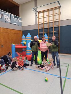 Die Fotos zeigen ihnen die Spendenübergabe der F Jugend und dem Kinderturnen des FV Linden.